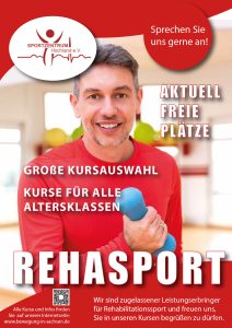Wir fördern die Ausübung von Rehabilitations- und Gesundheitssport. Das Angebot für die sportliche Betätigung reicht hier vom Kindes- bis ins Seniorenalter.